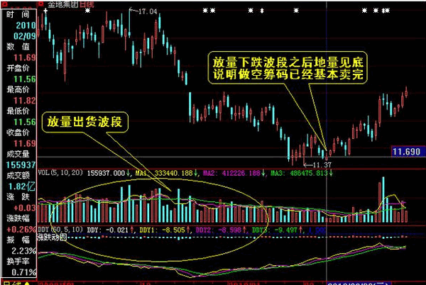 股价在下跌过程中出现很大的成交量,说明空方卖出的意愿极其强烈,多方节节败退。在走势上,处于连续下降的趋势中,波段跌幅巨大,由于空方卖出的筹码很多,成交量也很大。