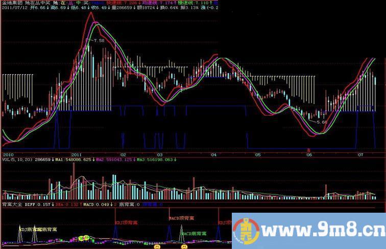 STICKLINE(KDJ顶背离,2,1,3,0),colorFF;