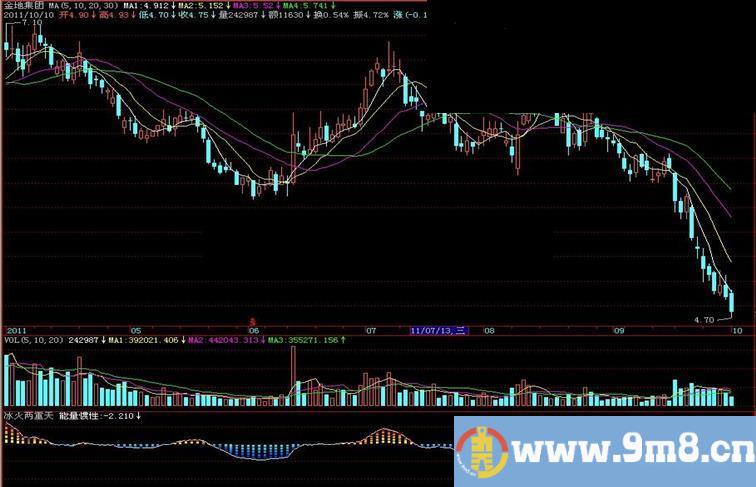 STICKLINE(能量惯性<0,(能量惯性-能量惯性*0.8),(能量惯性-能量惯性*0.95),5,0) COLORffff00;
