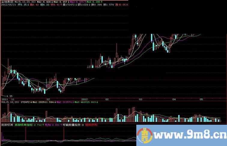 底部吸筹指标: (CLOSE-MA(CLOSE,40))/MA(CLOSE,40)*100, , color00ff00;