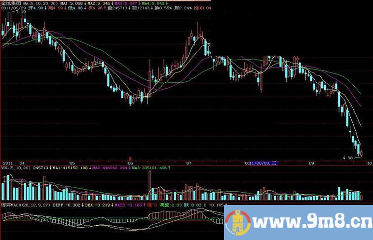 4.分析MACD柱状线,由红变绿(正变负),卖出信号;由绿变红,买入信号。}