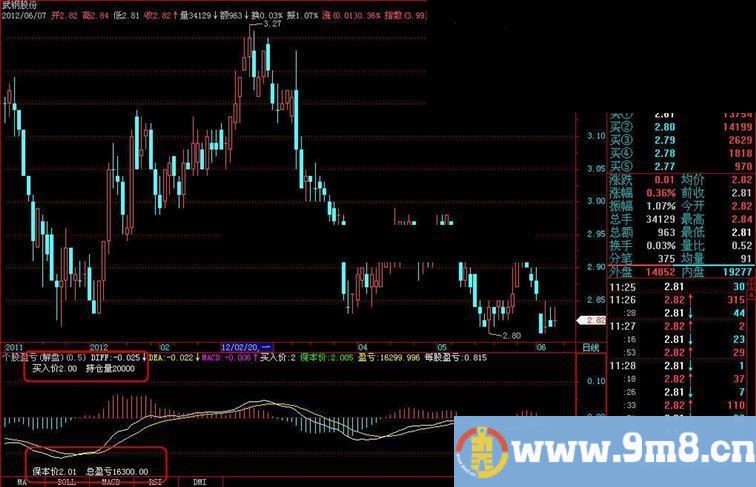 每股盈亏:(DYNAINFO( 7)-保本价),LINETHICK,COLORFFFFFF;