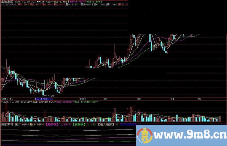 【底部线】:(HHV(HIGH,30)/LLV(LOW,30));