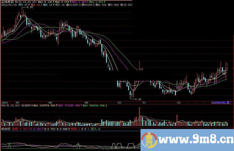 底部:IF(VarB>=1000000 AND Var9<-1.618,0.88,0),COLORRED;