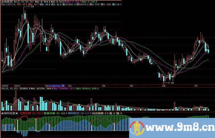 散筹估算:EMA((WINNER(C*1.1)-WINNER(C*0.9))*70,3),LINETHICK1,colorgreen;