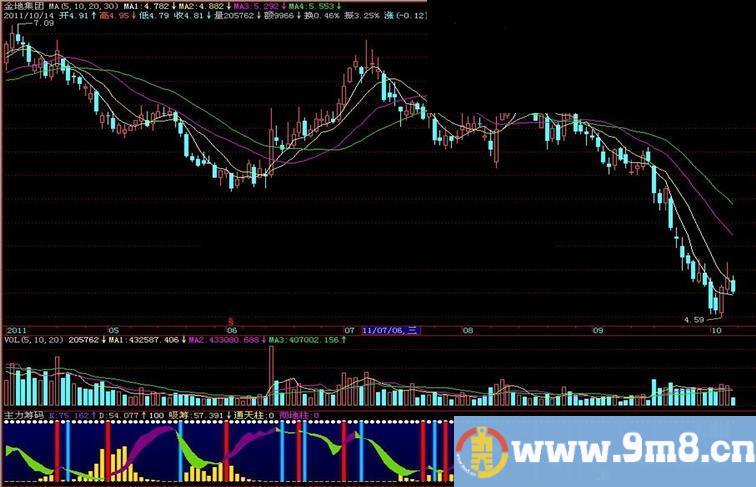 画渐变背景色((收盘价 > 0),RGB颜色值(0,0,88),RGB颜色值(0,0,55),1);