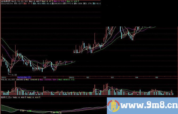 DRAWTEXT(CROSS(VAR2,VAR1),VAR1*1.01,'↓降'), , COLORGREEN;
