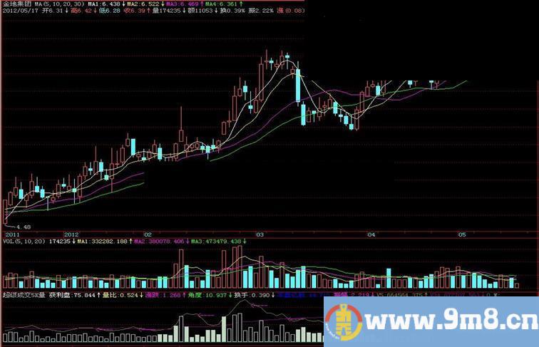 W: DRAWTEXT(CROSS(VarC,VarB) AND VarC>58,VOL*1.2,'卖');