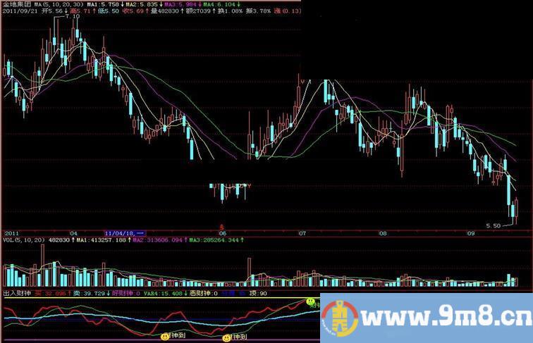 DRAWTEXT(FILTER(CROSS(var7,Var4) AND var7<21,5),Var4,'财神到'),coloryellow;