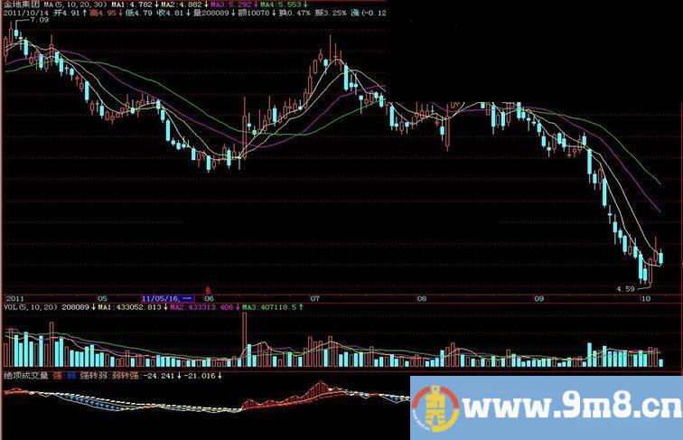强:STICKLINE(量2>=量3,量1,量3,1,0),COLOR0044FF;