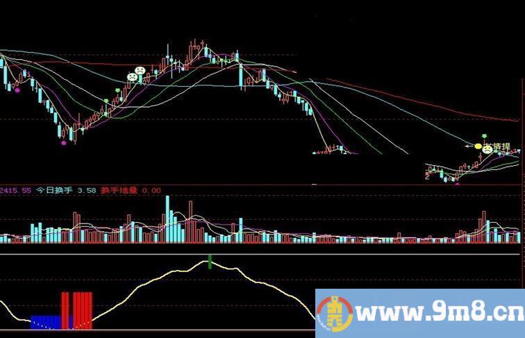 见顶清仓:STICKLINE(REF(FZ线,1)>90 AND Var2<0,100,80,5,0)COLORgreen;