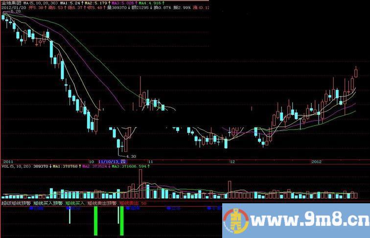 短线买入:STICKLINE( CROSS(郑,20),0,50,8,0),COLORGREEN,,LINETHICK2;