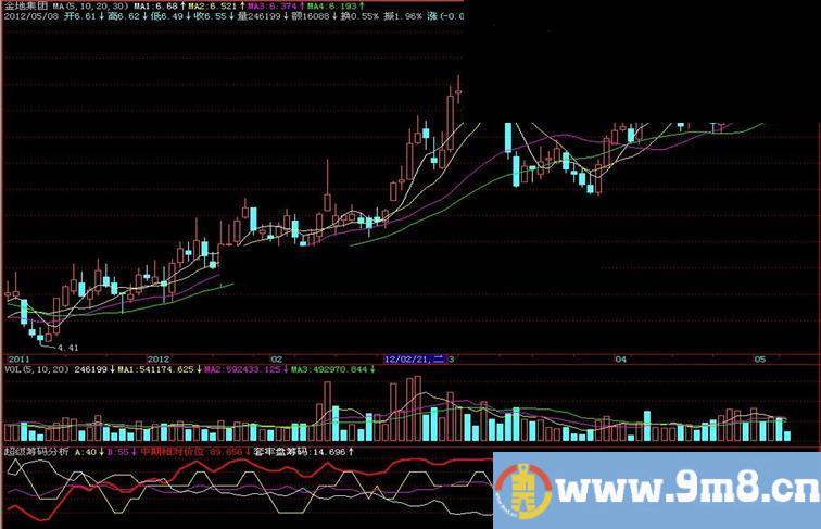 DRAWICON( B>REF(A,2) and A>REF(B,1) and var2<=50 and 100*(1-WINNER(C))>=93 and 中期相对价位<=25,A,40);