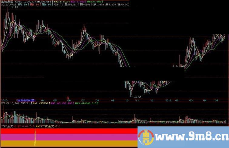 MACD二次金叉: FILTER(CLOSE>LLV(LOW,30)*1.01 AND CLOSE