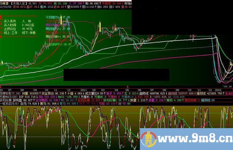 青马:(-100*(HHV(实价,N*4)-(实价+均价)/2)/(HHV(实价,N*4)-LLV(均价,N*4)))+100,COLORAAAA00;