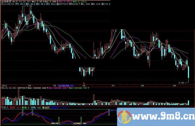 看底:IF((趋势-VAR6<(-65)),1,6),COLOR00FF00;