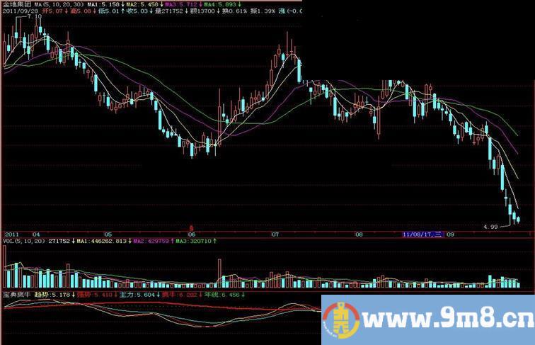 疯牛: DMA(MA(CLOSE+REF(CLOSE,5)/CLOSE*0.098,90),VOL),LINETHICK2,COLORRED;