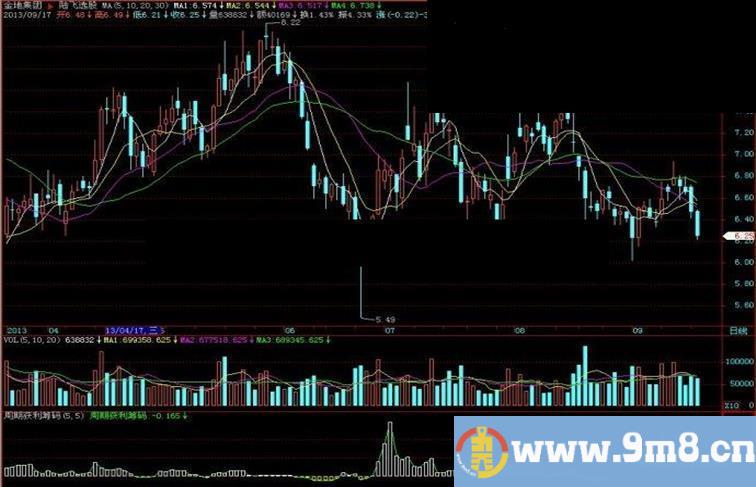 STICKLINE(周期获利筹码>0,0,周期获利筹码,6,1);