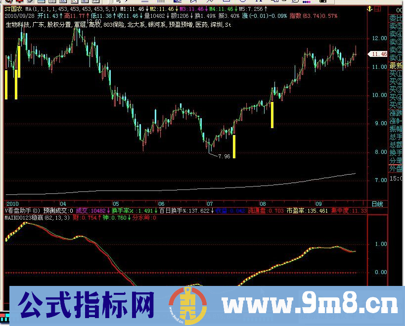 神:EMA(财,M),LINETHICK1,colorFF00;