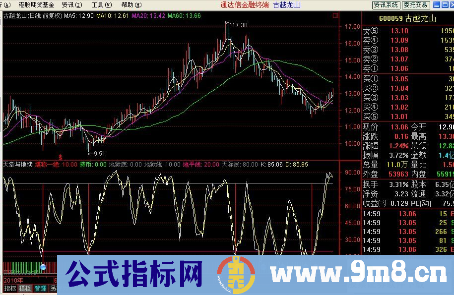 堪称一绝:IF(REF(TJ,1)=0 AND TJ =1,80,10),STICK,COLORRED;