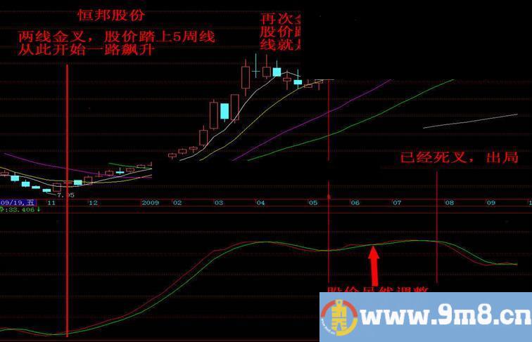 N:=30;M:=3; LOWV:=LLV(LOW,N); HIGHV:=HHV(HIGH,N); RSV:=EMA((CLOSE-LOWV)/(HIGHV-LOWV)*100,M); K:EMA(RSV,M),COLORRED; D:MA(K,M),COLORGREEN; DRAWTEXT(CROSS(K,D),110,'这里你随便写'),POINTDOT,COLORRED;