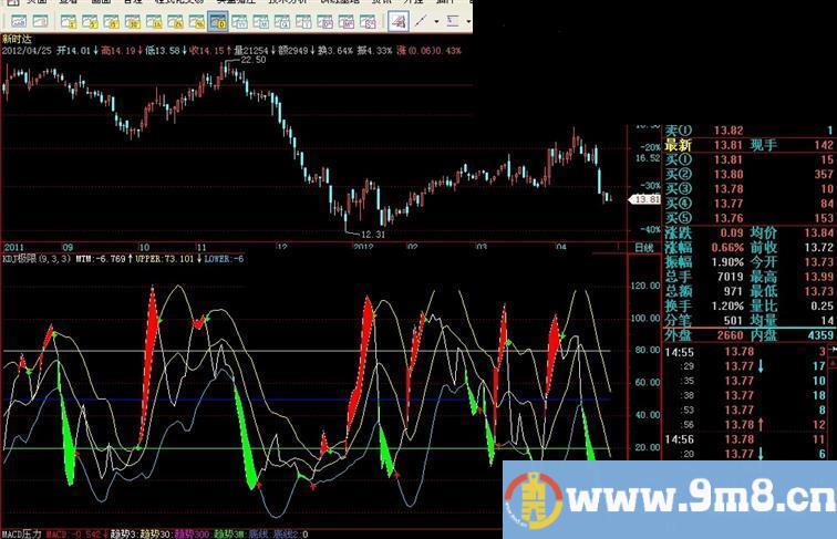 本指标是kdj优化而来,给出了买卖信号,选股时,选低位出现的红色带,且通道在中位线上的