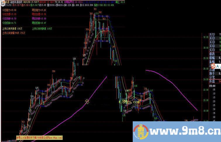 中期临界点: DMA(MA(CLOSE+REF(CLOSE,5)/CLOSE*0.098,90),VOL),LINETHICK2,COLORMAGENTA;