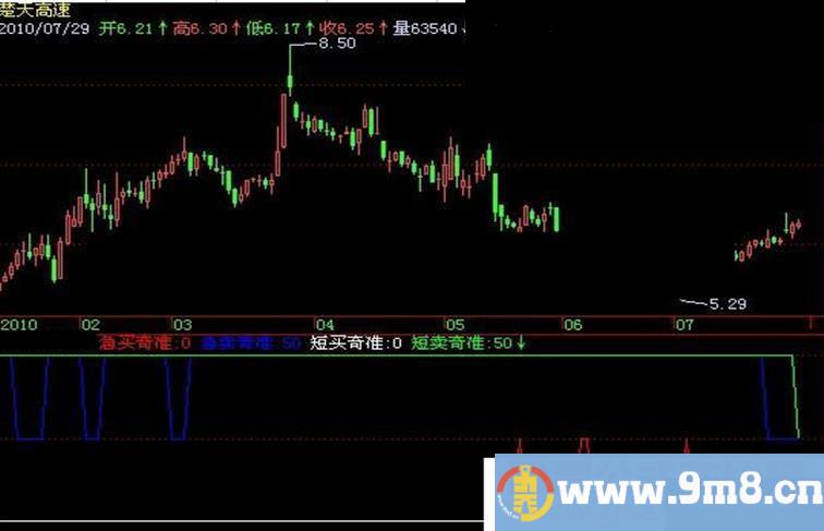 急买奇准:IF(LLV((你 < 买卖),5),50,0),colorFF;