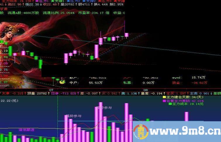 ■估算主力筹码:'+NUMTOSTR(ZSA[SYSPARAM(1)],2)+'%'),PXDN10,align2,COLORMAGENTA;