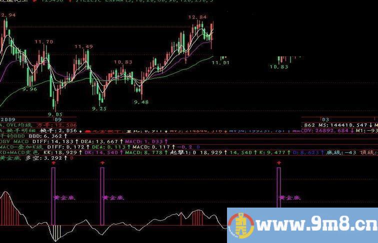 DRAWTEXT(FILTER(VARF=1,3),25,'黄金底'),COLORff00ff;