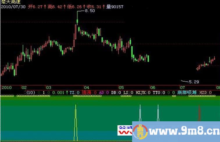 TT0:IF(JK<0 and c>=o AND C>LLV(LOW,9)*1.058 AND C>M1 AND C>TZD,0.8,0),colorFFFFFF;