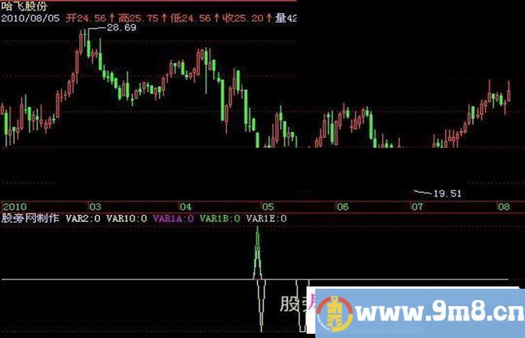 Var2:IF(EMA(CLOSE,5)/EMA(EMA(CLOSE,9),16)<=0.85 AND CLOSE/REF(CLOSE,1)>0.905 AND CLOSE/REF(CLOSE,1)<1.05 AND VOL/CAPITAL*100<5,50,0);