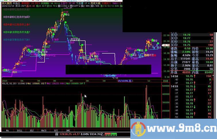 DRAWTEXTEX(1,0,10,0,'K线中部紫红色条纹买进!'),COLOR663377;