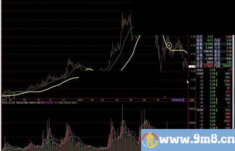 移动趋势线1:=LLV(MA(CLOSE,9),9);