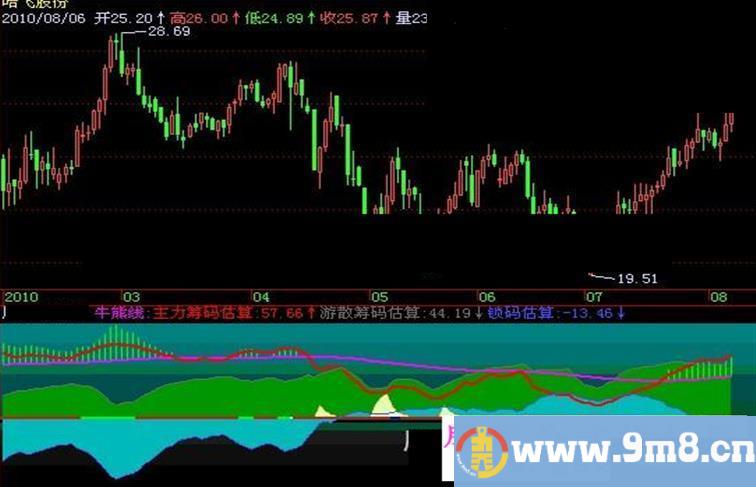 主力筹码估算:EMA((WINNER(CLOSE) * 70),5),LINETHICK2,PRECISION2,colorFF;