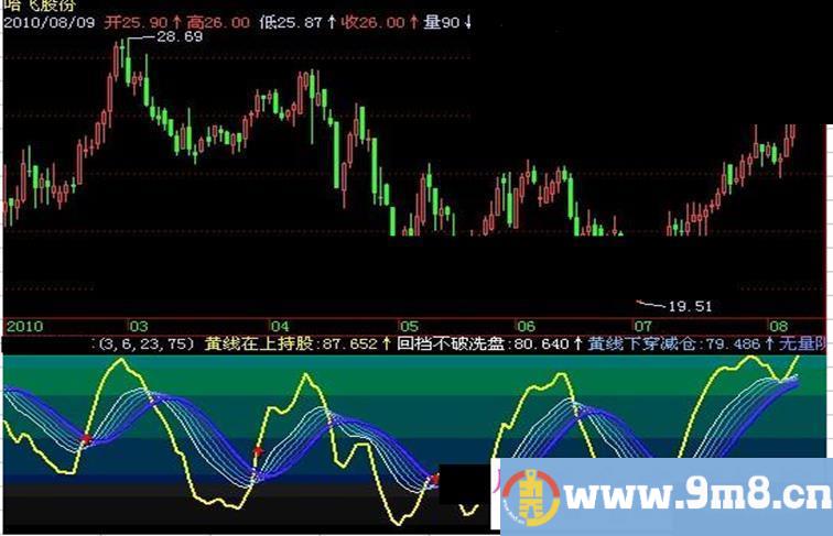 黄线在上持股:((3 * VAR4) - (2 * VAR5)),LINETHICK2,colorFFFF;
