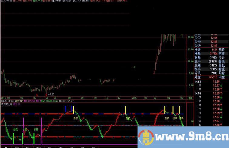 杀入:IF(CROSS(绝谷,90) AND (DD<40),70,0),colorff00ff,linethick2;