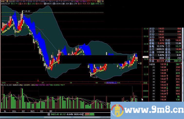中轨:=IF(AA 上轨:=HHV(MA((HIGH+LOW+CLOSE+OPEN)/4,6),33); 搜牛轨道:=LLV(MA((LOW+HIGH+CLOSE)/3,3),7); 下轨:=LLV(MA((LOW+HIGH+CLOSE)/3,8),58); A1:=MA(MA((LOW+HIGH+CLOSE)/3,1),5); A2:=REVERSE((HIGH+LOW+CLOSE)/3)+2*A1; A3:=3*A2-2*SMA(A2,2,1); A4:=IF(A3
