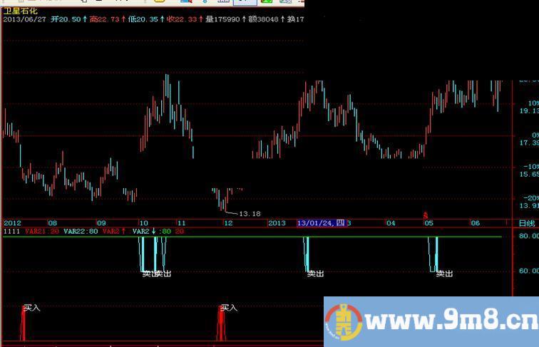 VAR2↓:STICKLINE(FILTER(REF(VAR2,1)>80 AND VAR2