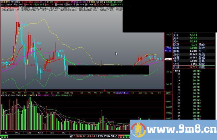 VARE:=(REF(VARD,1) AND CLOSE>=REF(CLOSE,1) AND CLOSE<=REF(CLOSE,2))*VAR0; VARF:=(REF(VARE,1) AND CLOSE<=REF(CLOSE,1) AND CLOSE>=REF(CLOSE,2))*VAR0; VAR10:=(REF(VARF,1) AND CLOSE>=REF(CLOSE,1) AND CLOSE<=REF(CLOSE,2))*VAR0; VAR11:=(REF(VAR10,1) AND CLOSE<=REF(CLOSE,1) AND CLOSE>=REF(CLOSE,2))*VAR0; VAR12:=(REF(VAR11,1) AND CLOSE>=REF(CLOSE,1) AND CLOSE<=REF(CLOSE,2))*VAR0; VAR13:=(REF(VAR12,1) AND CLOSE<=REF(CLOSE,1) AND CLOSE>=REF(CLOSE,2))*VAR0; VAR14:=(REF(VAR13,1) AND CLOSE>=REF(CLOSE,1) AND CLOSE<=REF(CLOSE,2))*VAR0; VAR15:=(REF(VAR14,1) AND CLOSE<=REF(CLOSE,1) AND CLOSE>=REF(CLOSE,2))*VAR0; VAR16:=(REF(VAR15,1) AND CLOSE>=REF(CLOSE,1) AND CLOSE<=REF(CLOSE,2))*VAR0; VAR17:=(REF(VAR16,1) AND CLOSE<=REF(CLOSE,1) AND CLOSE>=REF(CLOSE,2))*VAR0; VAR18:=(REF(VAR17,1) AND CLOSE>=REF(CLOSE,1) AND CLOSE<=REF(CLOSE,2))*VAR0; STICKLINE(VARD OR VARE OR VARF OR VAR10 OR VAR11 OR VAR12 OR VAR13 OR VAR14 OR VAR15 OR VAR16 OR VAR17 OR VAR18,CLOSE,REF(CLOSE,1),7,0),colorAAAA00; STICKLINE(VARD OR VARE OR VARF OR VAR10 OR VAR11 OR VAR12 OR VAR13 OR VAR14 OR VAR15 OR VAR16 OR VAR17 OR VAR18,CLOSE,REF(CLOSE,1),6,0),colorBBBB00; STICKLINE(VARD OR VARE OR VARF OR VAR10 OR VAR11 OR VAR12 OR VAR13 OR VAR14 OR VAR15 OR VAR16 OR VAR17 OR VAR18,CLOSE,REF(CLOSE,1),5,0),colorCCCC00; STICKLINE(VARD OR VARE OR VARF OR VAR10 OR VAR11 OR VAR12 OR VAR13 OR VAR14 OR VAR15 OR VAR16 OR VAR17 OR VAR18,CLOSE,REF(CLOSE,1),4,0),colorDDDD00; STICKLINE(VARD OR VARE OR VARF OR VAR10 OR VAR11 OR VAR12 OR VAR13 OR VAR14 OR VAR15 OR VAR16 OR VAR17 OR VAR18,CLOSE,REF(CLOSE,1),3,0),colorEEEE00; STICKLINE(VARD OR VARE OR VARF OR VAR10 OR VAR11 OR VAR12 OR VAR13 OR VAR14 OR VAR15 OR VAR16 OR VAR17 OR VAR18,CLOSE,REF(CLOSE,1),2,0),colorFFFF00; STICKLINE(VARD OR VARE OR VARF OR VAR10 OR VAR11 OR VAR12 OR VAR13 OR VAR14 OR VAR15 OR VAR16 OR VAR17 OR VAR18,CLOSE,REF(CLOSE,1),1,0),colorFFFF00; STICKLINE(VARD OR VARE OR VARF OR VAR10 OR VAR11 OR VAR12 OR VAR13 OR VAR14 OR VAR15 OR VAR16 OR VAR17 OR VAR18,CLOSE,REF(CLOSE,1),0,0),colorFFFF00; STICKLINE(VARD OR VARE OR VARF OR VAR10 OR VAR11 OR VAR12 OR VAR13 OR VAR14 OR VAR15 OR VAR16 OR VAR17 OR VAR18,LOW,HIGH,0.1,0),colorFFFF00; VAR19:=((REF(VARD OR VARE OR VARF OR VAR10 OR VAR11 OR VAR12 OR VAR13 OR VAR14 OR VAR15 OR VAR16 OR VAR17 OR VAR18,1)) AND VAR1)*VAR0; STICKLINE(VAR19,REF(CLOSE,1),OPEN,7,0),color33AACC; STICKLINE(VAR19,REF(CLOSE,1),OPEN,6,0),color33BBCC; STICKLINE(VAR19,REF(CLOSE,1),OPEN,5,0),color33CCCC; STICKLINE(VAR19,REF(CLOSE,1),OPEN,4,0),color33DDCC; STICKLINE(VAR19,REF(CLOSE,1),OPEN,3,0),color33EECC; STICKLINE(VAR19,REF(CLOSE,1),OPEN,2,0),color33FFCC; STICKLINE(VAR19,REF(CLOSE,1),OPEN,1,0),color33FFCC; DRAWTEXT(VAR19,REF(CLOSE,1),' ←买点'),color3300CC; VAR1A:=((REF(VAR1 OR VAR2 OR VAR3 OR VAR4 OR VAR5 OR VAR6 OR VAR7 OR VAR8 OR VAR9 OR VARA OR VARB OR VARC,1)) AND VARD)*VAR0; STICKLINE(VAR1A,OPEN,REF(CLOSE,1),7,0),colorFF33FF; STICKLINE(VAR1A,OPEN,REF(CLOSE,1),6,0),colorFF44FF; STICKLINE(VAR1A,OPEN,REF(CLOSE,1),5,0),colorFF55FF; STICKLINE(VAR1A,OPEN,REF(CLOSE,1),4,0),colorFF66FF; STICKLINE(VAR1A,OPEN,REF(CLOSE,1),3,0),colorFF77FF; STICKLINE(VAR1A,OPEN,REF(CLOSE,1),2,0),colorFF88FF; STICKLINE(VAR1A,OPEN,REF(CLOSE,1),1,0),colorFF99FF; DRAWTEXT(VAR1A,REF(CLOSE,1)+0.1,'←卖点'),colorFFEE00; MA3:=MA(CLOSE,3); YTSL:=(3*CLOSE+LOW+OPEN+HIGH)/6; 趋势线:(20*YTSL+19*REF(YTSL,1)+18*REF(YTSL,2)+17*REF(YTSL,3)+16*REF(YTSL,4)+15*REF(YTSL,5)+14*REF(YTSL,6)+13*REF(YTSL,7)+12*REF(YTSL,8)+11*REF(YTSL,9)+10*REF(YTSL,10)+9*REF(YTSL,11)+8*REF(YTSL,12)+7*REF(YTSL,13)+6*REF(YTSL,14)+5*REF(YTSL,15)+4*REF(YTSL,16)+3*REF(YTSL,17)+2*REF(YTSL,18)+REF(YTSL,20))/211*VAR0,colorFF; 持股线:MA(CLOSE,26)*VAR0,colorFF00FF; 等待:=IF(MA3>趋势线,趋势线,MA3); PARTLINE(等待>REF(等待,1),等待),LINETHICK2,colorFF; PARTLINE(趋势线>REF(趋势线,1),趋势线),LINETHICK2,colorFF; PARTLINE(趋势线