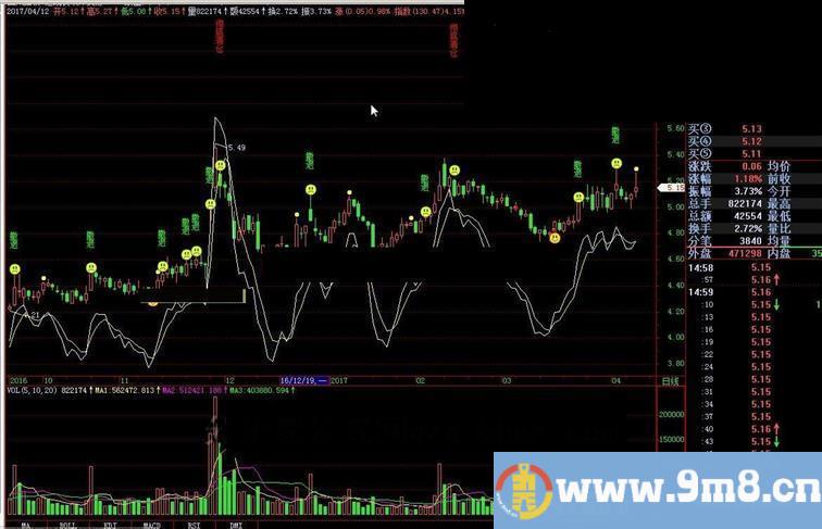 DEA:DEA1*4.5+EMA(CLOSE,5)*0.9,colorFFFF;