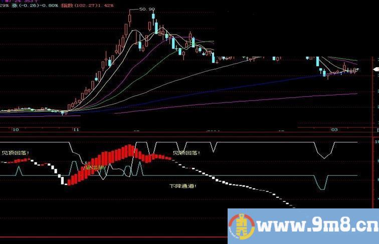 DRAWTEXT(t8 and count(t8,30)=1,90,'见顶回落!'),COLOR00FFFF;