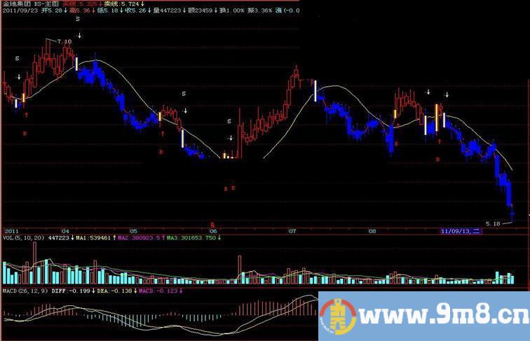 stickline(cross(买线,卖线) or cross(卖线,买线),open,close,6,0),coloryellow;