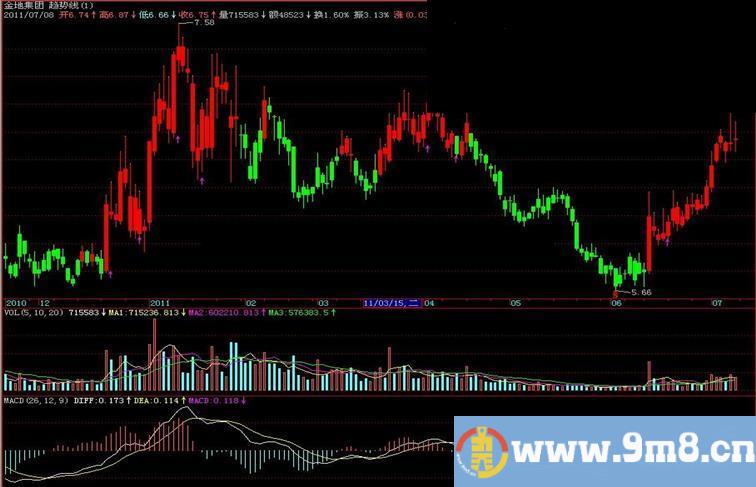 STICKLINE(CLOSE>=AA,OPEN,CLOSE,8,0),colorFF;