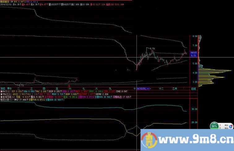 从这条线的运动轨迹看,当CMGJ这条线接近0轴时,上下红柱的长短相当,当它小于0时下方的红柱长,大于0时上方的红柱长。请看第二张贴图,最近几个交易日说明此股的筹码集中度才是真正的高。
