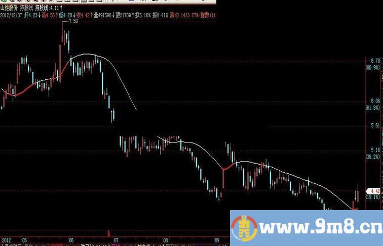 换手线:=(WMA(HSV,1)*0.618+(WMA(HSV,3)+WMA(HSV,6))/2+WMA(HSV,8)*0.382)/2,COLORMAGENTA;
