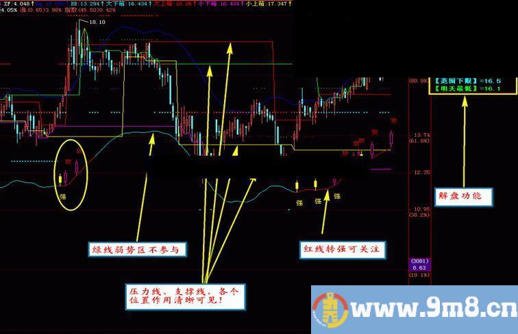DRAWTEXT(单阳=1 AND 周K<50,BB*0.97,'弱'),colorFFFF;