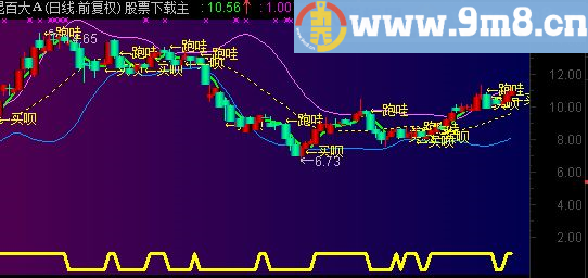 DRAWTEXT(CROSS(AJ,JD) ,L-0.2,' 买呗'),COLOR00FFFF,LINETHICK2;