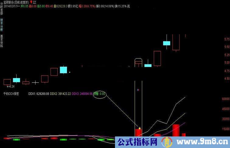 预警:DDX>0 and ma(v,5)>ma(ma(v,5),5) and CROSS(DDX1,DDX2),LINETHICK;