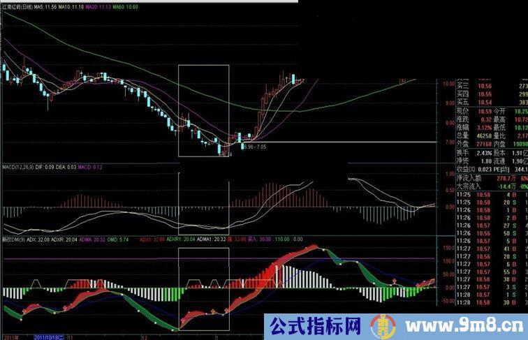 强:IF(ADX1>=ADXR1,ADX1,DRAWNULL),COLORRED,LINETHICK3;